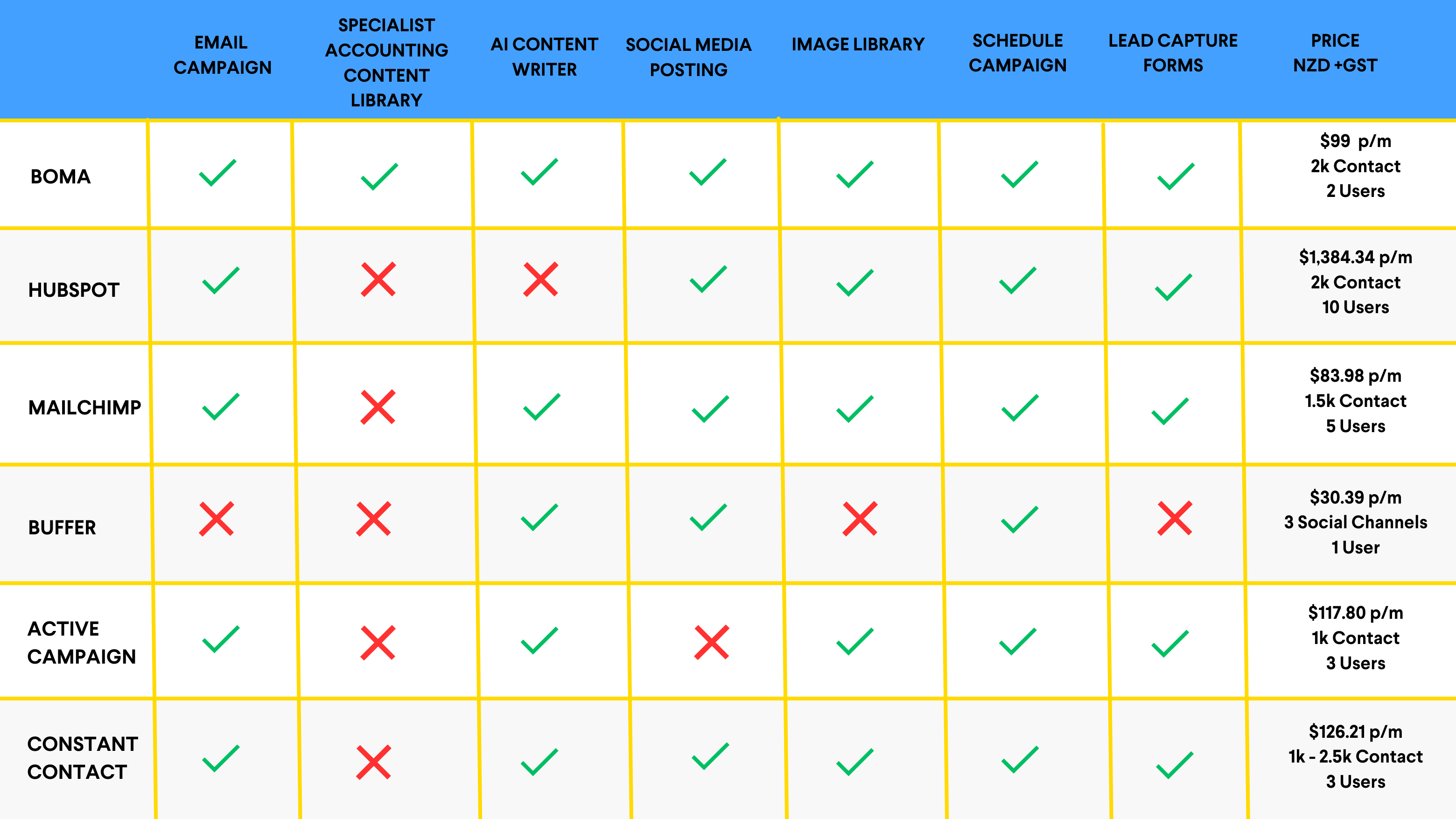 See how BOMA stacks up vs other marketing platforms